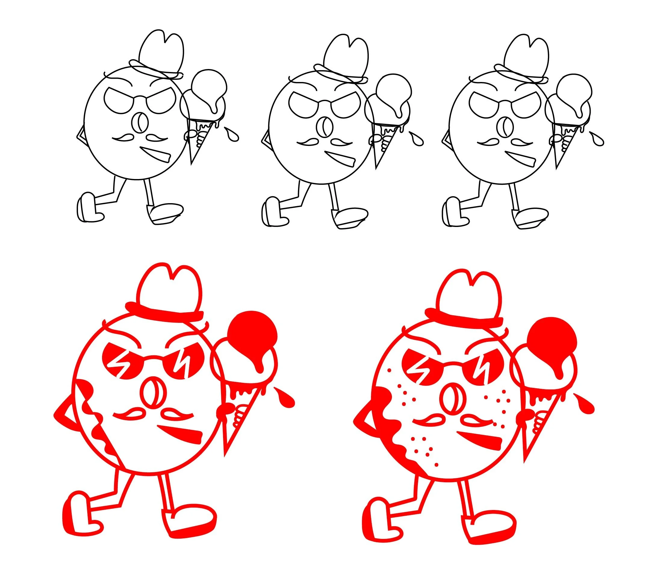 After finalising the mascot sketch, I moved on to the vectorise stage. I tried different color combinations of the shape and the stroke to find out which delivery works best regarding visual communication.